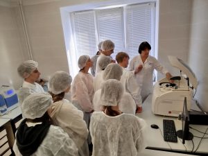 Там юные гости с большим интересом слушали о методах диагностики анализов крови, активно задавали вопросы специалистам, и особенно захватывающе, получили возможность заглянуть в микроскоп, открыв для себя невидимый мир клеток.
